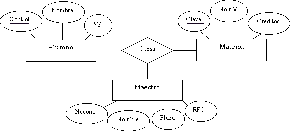 a su vez puede tener muchos alumnos matriculados, podemos definir entre ambas entidades la relación (n-m) matricula como: